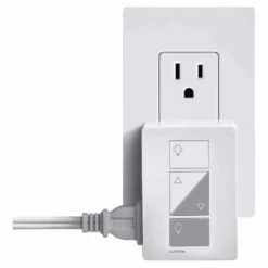 The Caseta Smart Lamp Dimmer controls up to 100W of LED/CFL or 300W of incandescent/halogen lamps. Featuring two receptacles for simultaneous control of two lamps, it plugs directly into a standard wall outlet for easy setup. This dimmer offers reliable dimming and can be converted into a switch for other lighting needs.