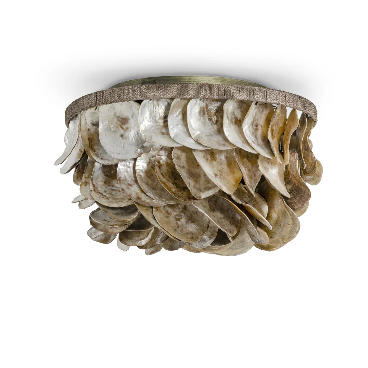 SKU: DW5PB 14635729060204 Category: Flush Mounts Tags: Brand_Palecek, Bulbe base_E12, Category_Flush Mount, CDNMarketPricing, Colour_Antique Brass, Finish_Antique Brass, Height_10.50, Market_Canada, Market_USA, Material_Cultured saddle oyster shells hung from an abaca wrapped met, NumberBulbs_2, Safety_Dry, Style_Transitional, Style_Tropical/British Colonial, Type_Other, Voltage_120 Volt, Width_18.00